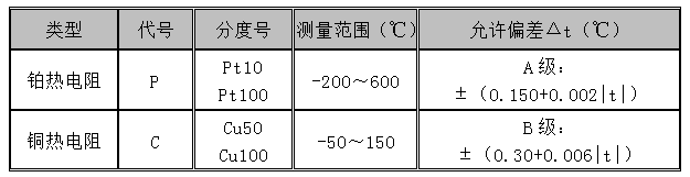 熱電阻溫度計(jì)選型表